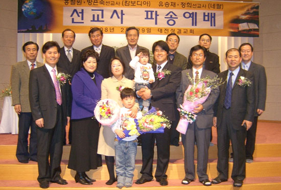 이날 파송받은 홍OO 선교사는 1997년 캄보디아에 파송받아 현지교회 개척 및 건축사역, 어린이사역, 의료구제사역 등을 펼치고 있으며, 유OO 선교사는 2002년 네팔 선교사로 파송받아 네팔 현지 어린이 및 교육사역에 힘쓰고 있다.