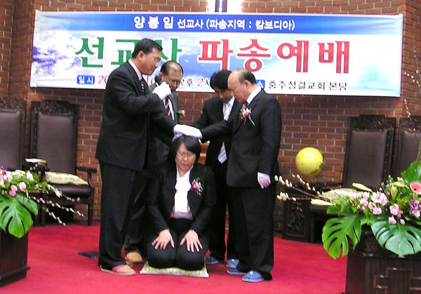 충주교회(연영민 목사)는 지난 2월 1일 선교사파송예식을 갖고 양봉임 선교사를 캄보디아에 파송했다.