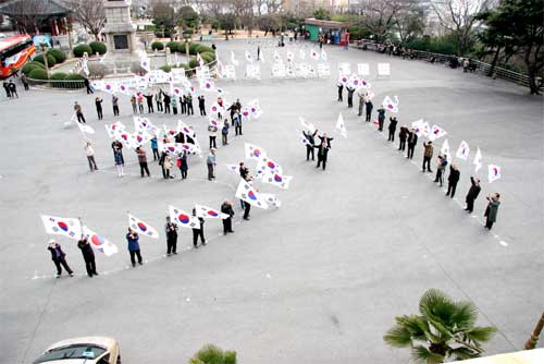 제90주년을 맞은 3.1절을 기념해 부선서지방 부산소망교회(원승재 목사)와 여전도회연합회(회장 신용경 권사)가 지난 2월 26일 부산 용두산공원에서 독립만세운동을 재현했다.