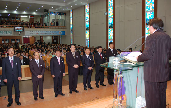 이날 지방회장 이대성 목사는 “큰 나라 사람은 하나님의 벗이 되어 필요한 것을 구하여 선한 일을 하는 사람이다”면서 “임직자들은 큰 나라 사람답게 비전2010 3333으로 하나님 나라를 확장하는 일에 온 맘으로 헌신할 것”을 주문했으며, 총회장 백장흠 목사와 전 총무 백천기 목사가 축사와 격려사를 통해 교회 부흥에 이바지하는 임직자들이 될 것을 당부했다.