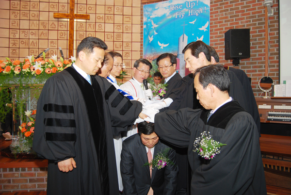 이날 임직식은 전상일 목사의 사회로, 지방회 부회장 최병암 장로의 기도, 지방회장 송창원 목사의 설교로 진행됐다. 또한 주남석 목사(세한교회)의 축사, 박석건 목사(예원교회)의 권면에 이어 강일권 목사(안산영광 원로)의 축도로 마쳤다.
