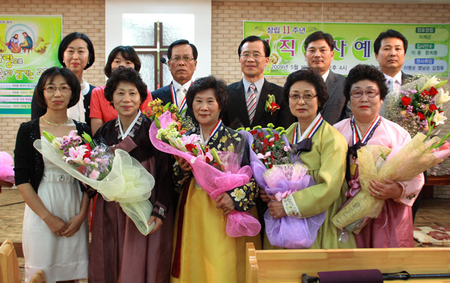 청주지방 분평교회(강성진 목사)가 교회창립 11주년을 기념해 임직예식을 갖고 하나님 나라 확장을 위한 헌신과 충성의 의지를 새롭게 다졌다.