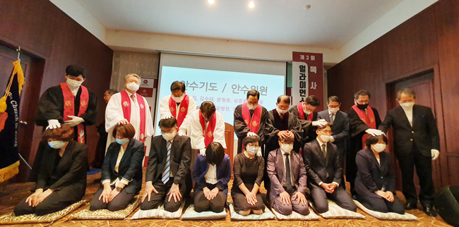 사무총장 신다윗 목사의 집례로 진행된 안수식에서는 김진희 나수경 신동한 이현아 채수희 최대왕 최민승 최숙자 씨가 안수를 받고 복음 전파와 하나님 나라 확장에 힘쓰는 목회자의 길을 걸을 것을 다짐했다.