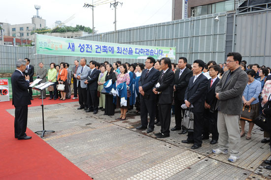 성락교회의 새 성전은 지난해 4월 28일 기공식을 갖고 터파기 공사를 진행하였으며 올해 들어 지하 벽체와 철근 배근 공사, 바닥 콘크리트 타설 등의 작업이 진행되고 있다. 5월말 현재 지하 1층 바닥 콘크리트 타설이 마무리 되었으며 6월 이후 부터는 지상 공사가 진행될 것으로 보인다.