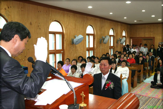 김정수 목사는 “여러 민족이 모여 성령으로 하나가 되어 선교의 모범적인 교회가 된 것처럼 작지만 큰 교회로서 성령으로 하나가 되어 주의 큰 일을 감당하기를 바란다”고 설교하였으며 이어 지방회 부회장 안정환 장로(대초리교회)의 기도로 장로장립식, 진성수 목사(한마음교회)의 기도로 명예권사 추대식이, 박성균 목사(진리교회)의 기도로 권사 취임식이 이어졌다.