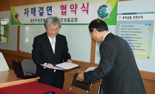동대전교회는 지난 2004년부터 자양초등학교 결식어린이들을 위해 3600여 만원의 급식비를 지원하는 등 지속적으로 결식아동 돕기에 나서왔으며, 이날 자양초등학교와 공식적인 결식아동 후원 협약을 맺게 된 것이다.