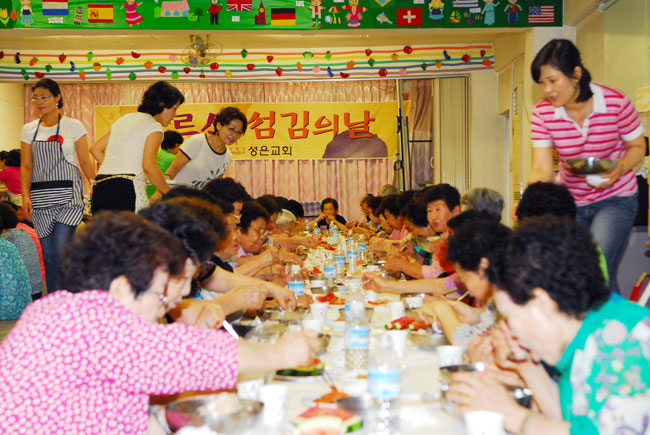 성은교회는 지난 7월 14일 초복을 맞아 이날을 ‘어른신 섬김의 날’로 정해 관내 4개 구립경로당의 어르신 200여분을 초청해 여름철 보양식인 삼계탕을 대접했다.