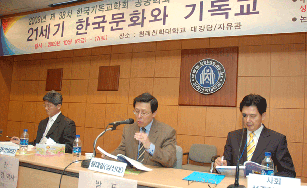 ‘성서로 본 문화, 성경의 눈으로 읽는 문화’라는 주제로 발제한 왕대일 교수(감신대 구약학)는 “성서는 문화의 옷을 입은 텍스트(inculturated texts)이기 때문에 성서본문의 의미가 다의적이고, 삶의 자리로 삼는 정황이 문화의 구현(embodiment)일 수도 있다”면서 “신학이 세상과 소통 가능한 언어가 되려면 신학의 문법이 달라지 않으면 안 된다”고 주장했다. 성서의 텍스트가 단순히 진리를 전하는 데만 그치지 않고 신앙공동체에서 소통될 수 있는 해석학, 즉 세상을 향해 열려진 책이 되어야 한다는 것이다.