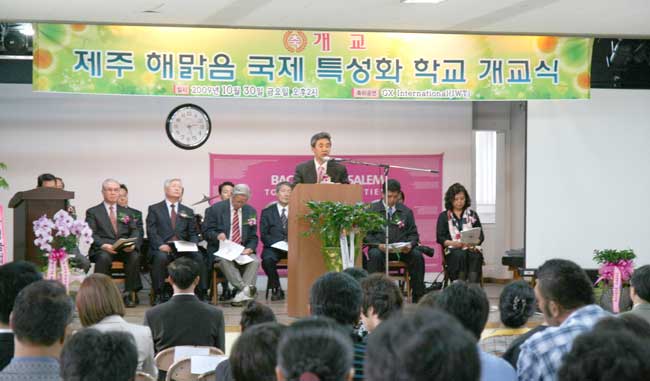또한 개교식에는 탐라대학교 양창식 총장, 전 서울신대 학장 조종남 박사, 횃불트리니티대학 송종필 부총장, 중국예술공사 유필난 부국장, 굼나제대안학교 이재문 교장 등이 참석해 제주도 최초의 기독교대안학교 설립을 축하하고 격려했다.