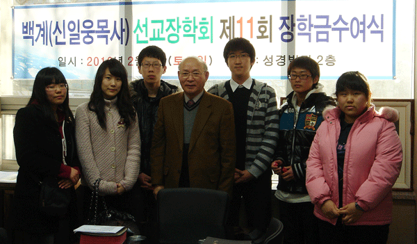백계선교장학회(이사장 신일웅 목사)는 지난 2월 6일 대구지방 작은교회 목회자 자녀 등 7명에게 장학금 350만원을 전달했다. 지난 2005년 출범한 장학회는 매년 두 차례씩 어렵게 공부하는 신학생이나 목회자 자녀, 불우 학생 등에게 장학금을 수여해왔다. 지금까지 20여명이 장학혜택을 받았다.