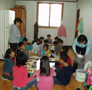 오후 3시가 넘으면 학교를 마친 초등학생 아이들이 하나둘 지역아동센터로 들어선다. 신발도 다 벗기 전에 이봉선 사모 품안으로 파고드는 모습이 너무나 자연스럽다. 오후 5시가 되면 중학생들까지 모두 모여 장암지역아동센터에는 북적북적 사람사는 냄새와 구수한 밥 냄새가 함께 피어오른다.