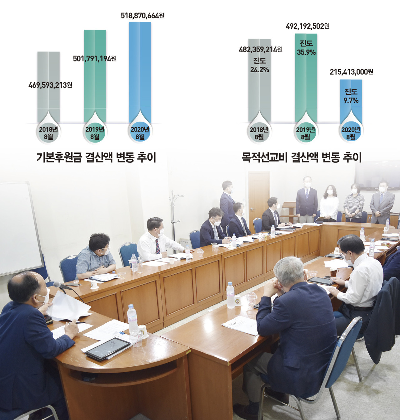2018년 8월 기준 기본 후원금은 월 결산액은 4억6959만원, 2019년 8월 5억179만원으로 늘었고, 올해 8월 기준 월 결산액도 5억1887만원으로 다소 늘어난 것으로 집계됐다.