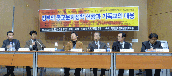 또한 박명수 교수(서울신대)는 “정부의 재정적인 지원이 기독교에 비해 불교에 편향적으로 이뤄지고 있다”며 이것은 정교 분리를 명문화한 헌법에 어긋난 편향적 태도라고 지적했다. 박 교수는 “전통문화의 보존이라는 명목으로 불교를 비롯한 전통종교에 막대한 예산을 투입하고 있다”면서 불교의 대장경 번역사업, 템플스테이, 국제불교테마공원 등을 대표적 사례로 꼽았다. 박 교수는 이런 문제를 바로 잡기 위해서는 기독교를 대변할 강력한 연합단체나 대표기구를 만들어 정부와 협상을 하거나 구체적인 대안을 정부에 제안해야 한다고 말했다. 그러나 박 교수는 다종교 시대에 타종교 뿐만 아니라 기독교도 편향적으로 정부 지원을 받아서는 안 된다고 덧붙였다.