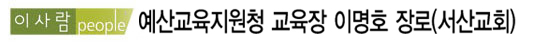 이명호 장로는 평교사로 시작했지만 남다른 교육열정으로 교감, 장학사, 교장 등을 거쳐 지난해 9월 예산교육지원청 교육장으로 취임했다. 이후 짧은 시간동안 뛰어난 교육행정 능력을 발휘하며 예산지역의 교육신뢰도를 높여가고 있다.